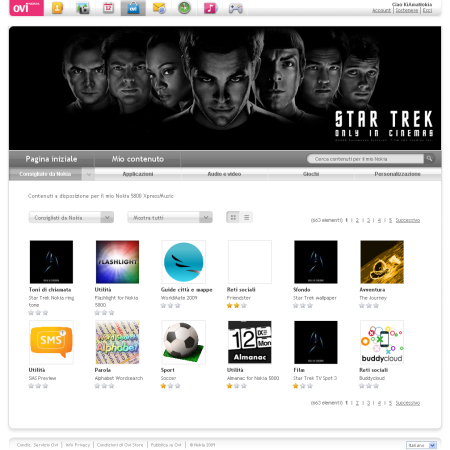 Sono attualmente disponibili 663 tra applicazioni, giochi, widget, suonerie, video ecc. Si paga con la carta di credito o con il credito dell’operatore (dove supportato). Per accedere si può aprire dal browser store.ovi.com oppure, nei telefonini, andare dal menu sull’icona Download!