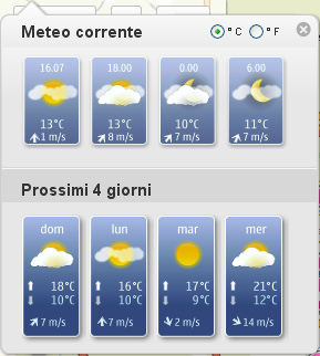 Un’altra utilità è il meteo attuale e con le previsioni per i prossimi giorni.